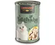 LeonardoLeonardo Dinde avec extra filet 6 x 400 gDinde avec extra filet 6 x 400 gDinde avec extra filet 6 x 400 gPâtée pour chats au dinde. Cuites délicatement dans leur propre jus, les viandes deviennent un régal irrésistible à déguster. L'huile de saumon apporte la touche finale à la recette et fournit les acides gras nécessaires à un pelage exceptionnellement soyeux. Naturellement sans sucre, sans colorants ni arômes artificiels et sans conservateurs. Composition :viande de dinde, foie, cur, gésiers 56% ; bouillon de dinde 28,8% ; filet de dinde 14% ; minéraux 0,5% ; coquille d'uf séchée 0,5% ; huile de saumon 0,2%. Analyse :Protéines 11%, matières grasses 6%, cendres 2,2%, fibres brutes 0,3%, humidité 78%, calcium 0,3%, phosphore 0,2%, sodium 0,2%.