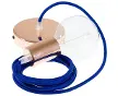 Suspension simple, lampe suspendue avec câble textile bleu en tissu effet soie RM12.Rosace et douille:Cuivre.Longueur du câble:1 mètre.Mo...