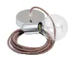 Pendule unique, suspension lampe câble textile Brown Glitter en Lin Naturel RS82.Rosace et douille: Chromé.Longueur du câble: 2 Mètres.Mo...