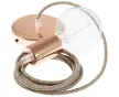 Suspension unique, lampe à suspension Câble textile Glitter Brown en Lin Naturel RS82.Rosace et douille:Cuivre.Longueur du câble:2 Mètres...