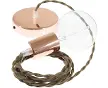 Suspension, lampe à suspension avec câble textile marron en Coton TC13.Rosace et douille:Cuivre.Longueur du câble:1 mètre.Montage:Déjà mo...