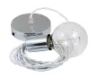 Plafonnier suspendu simple avec câble textile blanc en tissu TM01 effet soie.Rosace et douille: Chromé.Longueur du câble: 1 mètre.Montage...