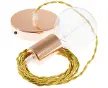 Plafonnier suspendu à une seule ampoule avec câble textile doré en tissu TM05 effet soie.Rosette et douille:Cuivre.Longueur du câble:1 mè...