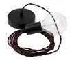 Plafonnier, suspension simple avec câble textile marron en tissu effet soie TM13.Rosace et douille:Noir.Longueur du câble:0,5 mètre.Monta...