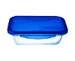 PyrexPyrex Cook & GoCook & GoCook & GoPlat RECTANGLE en verre léger : matériau sain et hygiénique, ne retient ni les tâches ni les odeurs Base en verre borosilicate : résistant aux températures extrêmes, de -40°C à +300°C, et aux chocs thermiques jusquà 220°C, permettant de cuire au four (sans le couvercle), conserver au réfrigérateur et au congélateur et de réchauffer au micro-ondes (sans le couvercle) Couvercle multifonction étanche et hermétique à l'air et aux liquides grâce aux 4 rabats et à son joint en silicone Plats empilables les uns dans les autres pour un gain de place dans les placards - 20x15 cm / Ø 0.8 L Espace dédié sur le couvercle pour écrire le contenu du plat ou le prénom avec un crayon à papier Sans BPA