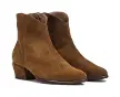 Bottines à la cheville en daim marron au design intemporel.Elles sont dotées d´un talon bloc recouvert et d´une fermeture éclair latérale...