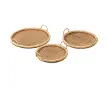 J-Line Set de 3 plateaux ovales rottin/metal naturel