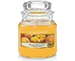 Yankee candleYankee candle Mango Peach SalsaMango Peach SalsaMango Peach SalsaAspect : Coloris : JauneMatériau principal : CireMatériaux secondaires : VerreDimensions : Diamètre (en cm) : 6,20Hauteur (en cm) : 8,60Autres caractéristiques : Informations complémentaires : Senteur mangue et pêche : mangues et les pe^ches juteuses releve?es d'agrumes - de fleurs de gingembre et de poivre rose , 25h à 40h de consommationPoids (en kg) : 0,24Poids de la cire (en gr) : 104 Bougie jarre en verre senteur mangue et pêche