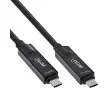 InLineInLine USB 3.2 Gen.2 AOC KabelUSB 3.2 Gen.2 AOC KabelUSB 3.2 Gen.2 AOC KabelCompatibilité 8K et 4K pour un affichage brillant : transmet des vidéos en 8K @ 60 Hz et 4K @ 144 Hz - Idéal pour les moniteurs UHD, les jeux et les applications multimédia. Technologie optique active longue distance : permet des transmissions fiables sur plusieurs mètres sans perte de qualité - Idéal pour les grandes configurations. Prend en charge DisplayPort Alt Mode via USB-C : compatible avec DP Alt Mode 4 lanes/2 voies - Comprend HDR10, HDCP 2.2, EDID et fonction 3D. Vitesse de transfert de données et alimentation : transfert jusqu'à 10 Gb/s et USB 2.0 et prise en charge Power Delivery jusqu'à 20 V/3 A Câble robuste et léger : fabrication de haute qualité avec connecteurs métalliques, fibre OM3 et rayon de courbure de seulement 30 mm pour une flexibilité maximale.