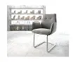 DELIFEDELIFE Cantilever Zoa-Flex velours gris pied cantilever rond acier inoxydable brossé ressorts ensachésCantilever Zoa-Flex velours gris pied cantilever rond acier inoxydable brossé ressorts ensachésCantilever Zoa-Flex velours gris pied cantilever rond acier inoxydable brossé ressorts ensachésAttrayante et subtile, la chaise Zoa pivotante avec accoudoirs, attire par le caractère de ses lignes et légères courbes. Dun design élaboré, séparant le dossier des accoudoirs et doté dun rembourrage de qualité, la chaise offre un confort dassise important et agréable à la fois. Ses finitions soigneusement élaborées avec une double couture, parachève lensemble optique de la chaise.Le noble lustre du velours doux fait d'une chaise quelque chose de très spécial. Les tissus de velours modernes sont robustes et résistants et donc excellents pour les modèles de chaises actuels.Chaise de salle à manger Zoa velours gris - le siège idéalLa forme classique du pied cantilever sous un profil arrondi est toujours particulièrement agréable et relaxante, apportant cet effet de balancement décontractant. Le pied de la chaise est en acier inoxydable de haute qualité et brossé à la main. Sa structure est particulièrement résistante à loxydation et à l'usure. Grâce au processus de brossage, le pie