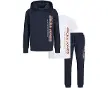 Jack & JonesJack & Jones Nouveau Pack Triple Junior de StructureNouveau Pack Triple Junior de StructureNouveau Pack Triple Junior de StructureL'Ensemble Jack & Jones New Structure Junior comprend les caractéristiques suivantes : L'ensemble Jack & Jones New Structure pour garçonsest un ensemble confortable composé d'un sweat à capuche, d'un tee-shirt et d'un pantalon de jogging.Spécifications : Coupe : coupe regular ; taille élastique avec cordon de serrage sur le pantalon ; col rond sur le t-shirt Contenu : sweat à capuche, t-shirt et pantalon de jogging Poignets : poignets légèrement élastiques aux manches et à l'ourlet du sweat Couleurs : bleu foncé - blanc - rouge Matériaux : 60% coton - 40% polyester