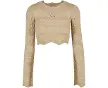 Le pull court pour femme présente un magnifique motif en tricot et crochet.Il est également doté de manches trompette avec bordure feston...