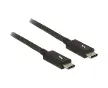 DeLOCKDeLOCK Câble USB C - Thunderbolt 3Câble USB C - Thunderbolt 3Câble USB C - Thunderbolt 3Connecteur : - 1 x Thunderbolt 3 USB Type-C mâle 24 broches > 1 x Thunderbolt 3 USB Type-C mâle 24 broches Chipset : Cypress E-Marker Section de câble : - Ligne de données 32 + 34 AWG - Ligne dalimentation 24 + 34 AWG Diamètre du câble : env. 4,4 mm Conducteurs : 8 x câbles coaxiaux pour USB SuperSpeed, 1 x paire torsadée pour USB 2.0 Débit de données : - Thunderbolt 3 jusqu'à 20 Go/s - DisplayPort 1.2a jusqu'à 21,6 Go/s - SuperSpeed USB jusqu'à 10 Go/s - Thunderbolt Networking jusqu'à 10 Gb/s (Peer-To-Peer) Résolution d'affichage jusqu'à : - 1 x 5120 x 2880 30 Bit @ 60 Hz ou - 1 x 4096 x 2160 30 Bit @ 60 Hz (selon le système et le matériel connecté) Câble à triple blindage