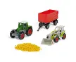 Coffret cadeau 4 pièces comprenant 1 tracteur, 1 chariot élévateur télescopique, 1 paquet de granules, 1 remorque de chargement de foin p...