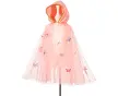 cape rose et papillons avec capuche pour enfant de 110 ? 122 cm