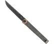 BökerBöker Couteau pliant Kaizen Green Canvas MicartaCouteau pliant Kaizen Green Canvas MicartaCouteau pliant Kaizen Green Canvas MicartaThe popular Boker Plus Kaizen convinces in this version supplied with slightly contoured handle scales made of olive green canvas micarta, while the blade and the clip are coated black. The bronze-coloured lanyard hole and the ring around the blade axle screw set additional visual accents. The resulting colour contrast is reminiscent of the hardships of exploratory expeditions long ago. The Japanese term kaizen is made up of the syllables kai (change) and zen (for the better) and describes the continual striving for improvement. Perfection becomes a temporary phenomenon and is merely an intermediate goal in the constant process of change. As an elegant gentleman's knife, the Boker Plus Kaizen captures the spirit of the times and convinces with clever detailed solutions. Modesty as a sign of true greatness is perfectly embodied by the minimalist flipper, which visually almost merges with the slender knife and is nevertheless highly functional thanks to the jimpings. The ball-bearing D2