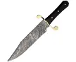 14.75" overall. 9.75" Damascus steel clip point blade. Buffalo horn handle. Brass guard. Full tang. Brown leather belt sheath. 84.15 , 78.10 2j (offer_sdt_2_days)