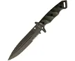Halfbreed Blades Halfbreed Blades Medium Infantry Knife, vert Medium Infantry Knife, vert Medium Infantry Knife, vert 11.63" (29.54cm) overall. 6.5" (16.51cm) OD green Teflon coated partially serrated K110 tool steel spear point blade. OD green sculpted G10 handle. Full, extended tang. Lanyard hole. Crusher pommel ideal for breaking glass and other hammering tasks. Black Kydex MOLLE compatible belt sheath. (1)