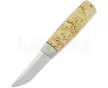 Ismo KauppinenIsmo Kauppinen Couteau Outdoor, birchCouteau Outdoor, birchCouteau Outdoor, birchFrom the hands of Ismo Kauppinen, renowned for crafting knives rooted in tradition, comes the Outdoor knifea visually pleasing yet versatile tool designed to assist outdoor enthusiasts, such as hunters and fishermen. The knife adapts to various wilderness tasks and excursions. The blade, made from high-end stainless N690 steel, ensures top-notch performance. Embracing tradition, the handle combines curly birch and reindeer antler, while a dark-toned leather sheath completes the package. Ismo Kauppinen's Outdoor Knife is the go-to tool for outdoor enthusiasts, likely to captivate collectors as well.
