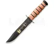 Ka-BarKa-Bar Couteau US Army Vietnam War CommCouteau US Army Vietnam War CommCouteau US Army Vietnam War Comm12" overall fighting knife. 7" 1095 carbon steel blade with black epoxy powder coating and commemorative artwork. U.S. Army tang stamp. Stacked leather handle with black powder coated carbon steel guard and pommel. Brown leather belt sheath embossed with U.S. Army logo.