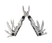 4" closed. 6.25" overall. Brushed stainless handles. Tools include: Needlenose pliers l Pliers l Wire cutter l Serrated blade l Large bla...