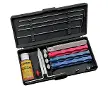 LanskyLansky Universal LKUNV système d'aiguisageUniversal LKUNV système d'aiguisageUniversal LKUNV système d'aiguisage- Breveté, conçu avec soin - Réglage multi-angle - Étau pour le couteau en acier inoxydable - Pierres à aiguiser sélectionnées pour la couleur, poignée anatomique pour plus de sécurité - Bâtons de soutien pour chaque pierre - Huile de nettoyage pour pierres spécialement formulé - Vis de serrage pour couteaux longs - Boîtier en plastique résistant pour tous les composants du système d'affûtage - Quatre pierres inclus : grossier, moyen, fin, et pour couteaux dentelés