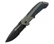 Smith & WessonSmith & Wesson Couteau pliant Linerlock A/OCouteau pliant Linerlock A/OCouteau pliant Linerlock A/OAssisted opening. 4.5" closed. 3.25" black finish partially serrated stainless blade. Black and green rubberized aluminum handle. Thumb stud. Pocket clip.