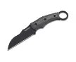 BökerBöker Couteau Straight KarambitCouteau Straight KarambitCouteau Straight KarambitAs hot as Fritton fat! The knife designer Ruben Fritton has completely reworked the idea of the Karambit knives, which are particularly well known in Southeast Asia, and presents the fixed Magnum Straight Karambit as a robust knife with tactical DNA. The characteristically curved handle now gives way to a straight design with ergonomic handle scales made of black Micarta. The full tang construction and a powder-coated, black modified sheepfoot blade made of 440A ensure maximum stability when cutting up cardboard boxes or pruning small branches. The typical ring at the end of the handle for attaching one's finger can optionally be used as a lanyard hole, making it the ideal complement to the supplied Kydex sheath with a belt clip as an additional carrying option.