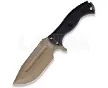 Halfbreed BladesHalfbreed Blades Large Bush KnifeLarge Bush KnifeLarge Bush Knife11.25" (28.58cm) overall. 5.75" (14.61cm) Teflon coated K110 tool steel blade. Black G10 handle. Full, extended tang. Lanyard hole. Bow drill on both sides of the handle. Crusher pommel with fire starter. Dark earth blade. Black Kydex MOLLE compatible belt sheath.