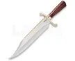 HibbenHibben Couteau Old West BowieCouteau Old West BowieCouteau Old West Bowie20" (50.8cm) overall. 14" (35.56cm) mirror finish stainless clip point blade. Brown wood handle. Bloodwood Edition. Gold plated catcher and guard. Leather belt sheath.