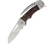 Type: Linerlock. Closed: 3.5"; Blade: 2.5" l German Steel l Standard Edge l Satin Finish; Handle: Brown l Wood; Other Info: Bail l Shackl...