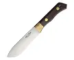 9.25" overall. 5" satin finish 15N20 steel blade. Brown wood handle. Brass guard. Full tang. Lanyard hole. Black leather belt sheath. 203.43 , 203.43 2j (offer_sdt_2_days)