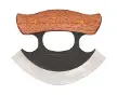 5.5" (13.97cm) rough forged 1095HC steel ulu blade. Wood handle. Full tang.4.5" handle. Brown leather belt sheath.