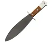 WindlassWindlass Couteau OSS SmatchetCouteau OSS SmatchetCouteau OSS SmatchetThe odd looking, but very effective Smatchet was the brain child of William Fairbairn (who also co-developed the Fairbairn-Sykes Fighting Knife) during WWII for the OSS (Office of Strategic Services) and British SAS (Special Air Service) for use on clandestine missions behind enemy lines. There were many variations in the grip and pommel, but the basic specifications never changed. Our reproduction is based on an original piece loaned to us by a very generous collector (we matched it detail to detail). Features a high carbon steel, full tang, blued matte finished blade thats razor sharp on one cutting side and 1/3 of the reverse edge. The close grained hardwood grips are held in place with 2 big rivets, the cast aluminum pommel (pinned in place) includes a lanyard hole. The hardwood lined and black leather covered sheath fits on belts up to 3-1/4" wide. Our replica even features the angled belt loop on the sheath, just like the original !