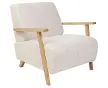BelianiBeliani Fauteuil Lesja Tissu Beige ClairFauteuil Lesja Tissu Beige ClairFauteuil Lesja Tissu Beige ClairFauteuil en tissu avec accoudoirs. Détendez-vous dans ce fauteuil en tissu, dont l'assise confortable et rembourrée est recouverte d'un tissu doux et résistant de couleur beige clair, et dont les accoudoirs et les pieds sont fabriqués en bois d'eucalyptus, ce qui lui confère un aspect chaleureux et douillet. Les accoudoirs sont légèrement incurvés pour plus de confort, et les pieds en bois robustes offrent une excellente stabilité et un bon soutien. Ce fauteuil allie un design fonctionnel à une esthétique classique et simple, ce qui en fait un complément parfait pour votre salon ou votre chambre à coucher.Détails: Type de produit: Fauteuil Style: Rétro Couleur principale: Beige Nuance: Beige clair Type de matière: Tissu Matière principale: Polyester Matière secondaire: Nylon Matière du rembourrage: Rembourrage en mousse Matière du piétement: Bois Matière de l`assise: Tissu Composition de la matière: 7% Nylon Style des accoudoirs: Droit Accoudoirs: Oui Patins pour pieds:
