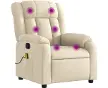 vidaXLvidaXL Fauteuil inclinable de massage crème tissuFauteuil inclinable de massage crème tissuFauteuil inclinable de massage crème tissuAsseyez-vous et détendez-vous dans ce fauteuil inclinable de massage très confortable ! Fonction d'inclinaison manuelle : ce fauteuil inclinable est doté d'une poignée du côté droit. Vous pouvez régler manuellement le repose-pieds et le dossier dans n'importe quelle position selon votre confort en tirant simplement sur la poignée. Cette fonction permet une inclinaison maximale de 135 degrés. De plus, le dossier peut revenir rapidement à sa position d'origine en tirant simplement sur la poignée. Fonction de vibration : les 6 points de massage vous permettent de faire l'expérience d'un massage mieux ciblé. De plus, la télécommande incluse vous permet de choisir différents programmes de massage. La fonction de massage est alimentée par le connecteur USB, mais la source d'alimentation USB 5V certifiée n'est pas incluse. Expérience d'assise confortable : le siège, le dossier et les larges accoudoirs bien rembourrés recouverts de tissu procurent une sensation confortable et chaleureuse
