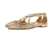 Un des must-have de la saison à ne pas manquer ! Ballerines en cuir couleur platine à bout fin, en cuir tressé et détail de tresse sur le...