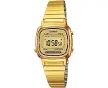 CasioCasio La670-wega Watch DoréLa670-wega Watch DoréLa670-wega Watch DoréModelle: Casio CollectionCette montre à la mode et est un excellent cadeau pour chaque occasion! -Cette Montre Digital a une function calendrier: Jour-Date-Mois, Chronographe, Alarme, Compte à reboursBracelet de Haute qualité en Acier inoxydable Doré 20 cm de longueur et 10 mm de largeur avec un Fermoir Boucle déployanteMesures du boîtier: 25x25 mm, Épaisseur du boîtier: 7 mm, Couleur du boîtier: Doré et Couleur du cadran: DoréRésistant à l'eau: 3 bar-Poids: 30 gLa montre est livrée dans une belle boîte cadeau avec une garantie de 2 ansChronographe Alarme Compte à rebours