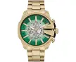 DieselDiesel Chronograph Mega ChiefChronograph Mega ChiefChronograph Mega ChiefBoîtier et mouvement : boîtier de 48 mm, verre minéral résistant aux rayures, mouvement à quartz précis avec affichage analogique chronographe, largeur de bande de 24 mm. Cadran : boîtier rond en acier inoxydable doré avec cadran Sunray poli doré, vert et argenté. Bracelet de montre : bracelet en acier inoxydable doré durable ; les maillons peuvent être retirés pour un ajustement personnalisé. Étanche jusqu'à 50 m : la montre est protégée pour les courtes séances de natation et la douche, mais pas pour la plongée ou la plongée avec tuba, 5 ATM. Type de garantie : fabricant