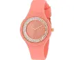 Orologio in acciaio nichel free finitura PVD oro rosa Bracciale silicone Quadrante tondo con sfondo corallo e con cristalli applicati Cri...