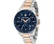 MaseratiMaserati Chronograph SfidaChronograph SfidaChronograph Sfida[Matériaux] Maserati SFIDA Montre pour homme, en acier, pvd or rose, avec bracelet de montre en acier et boucle déployante à sécurité [Fonctions] Montre analogique avec mouvement à quartz et fonction chronographe [Caractéristiques] Le boîtier de la montre mesure 44mm de diamètre, avec épaisseur 11,40mm. Le boîtier sunray bleu est équipé d'un verre minéral [Imperméabilisation] Résistance à l'eau jusqu'à 10 ATM [Packaging] Boîte originale Maserati et garantie 2 ans