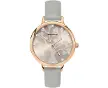 Boîtier plaqué or rose Cadran argenté serti de pierres de soleil avec emblème arbre de vie Bracelet en polyuréthane gris Garantie 2 ans D...