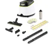 KärcherKärcher SC 3 Deluxe EUSC 3 Deluxe EUSC 3 Deluxe EUAvec un temps de chauffe d'à peine 30 secondes : le SC 3 Deluxe, muni d'un bandeau lumineux à LED et offrant un rangement parfait des accessoires, permet un nettoyage sans interruption grâce au réservoir à eau remplissable à tout moment.Le SC 3 Deluxe est prêt à l'emploi après seulement trente secondes de temps de chauffe et élimine jusqu'à 99,999 % des virus* et 99,99 % de toutes les bactéries domestiques courantes** sur les surfaces dures. Le compartiment pour accessoires intégré à l'appareil permet un rangement simple et pratique des accessoires, du câble et du flexible. Parmi les autres équipements, on trouve la cartouche de détartrage intégrée, le réservoir à eau remplissable à tout moment pour un nettoyage sans interruption, le bandeau lumineux à LED indiquant le mode de fonctionnement ainsi que des accessoires variés pour éliminer les saletés tenaces sur le carrelage, les plaques de cuisson, les hottes et les joints. En outre, le suceur pour sol EasyFix à articulatio