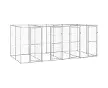 vidaXLvidaXL Chenil extérieur Acier galvanisé 9,68 m²Chenil extérieur Acier galvanisé 9,68 m²Chenil extérieur Acier galvanisé 9,68 m²Ce chenil polyvalent pour chiens a de multiples utilisations : jeu, exercice, dressage ou tout simplement protection de votre chien. Ce sera le paradis de jeu parfait pour votre compagnon ¿¿ quatre pattes ! Ce chenil pour chien offre un grand espace d'exercice. La maille tout autour aide ¿¿ pr¿¿venir les m¿¿faits et les accidents inattendus tout en permettant la ventilation. Gr?ce ¿¿ la construction robuste en acier galvanis¿¿, ce chenil pour chien est durable et con?u pour durer. La porte ¿¿ charni¿¿res avec un syst¿¿me de loquet verrouillable assure une s¿¿curit¿¿ suppl¿¿mentaire ¿¿ vos chiens. Couleur : argent¿¿Mat¿¿riau : acier galvanis¿¿Dimensions totales : 440 x 220 x 180 cm (L x l x H)Dimensions de la porte : 55,5 x 160 cm (l x H)Avec 2 portesSyst¿¿me de verrouillage ¿¿ loquetParois lat¿¿rales en mailleL'assemblage est requis