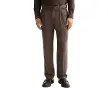 Yarn-dyed Wool Blend Relaxed Straight Pleated Chino Pants Marron 32 Homme