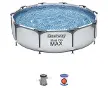 BestwayBestway Steel Pro MaxSteel Pro MaxSteel Pro MaxPrésentation de la gamme Steel Pro La ligne de piscines Steel Pro de Bestway propose des bassins de forme ronde, rectangulaire ou octogonale de différentes tailles pour tous les besoins. Les piscines sont fabriquées en Tri-Tech, un matériau composé de 3 couches : 2 couches de PVC laminé qui renferment un maillage synthétique intercalé de polyester, garantissant une résistance et une durabilité supérieure. Ce matériau de première qualité utilisé pour la conception des piscines hors-sol Bestway est également traité anti-UV et peut supporter des conditions extrêmes dont l'exposition au chlore. De plus, il a été testé pour résister à la pression d'un volume d'eau très important. Une piscine ronde tubulaire gigantesque Avec plus de 3 mètres de diamètre (3,05m), la piscine ronde tubulaire Steel Pro Max de Bestway est une piscine aux grandes dimensions pouvant accueillir aisément plusieurs de vos proches. Résistante grâce à sa structure métallique anti-corrosive, cette piscine dispose du syst