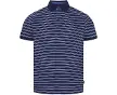 Polo casual en jersey indigo à rayures. Broderie contrastante sur la poitrine et surpiqûres contrastantes sur la fente latérale.Spécifica...