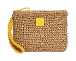 Mini pochette en papier effet paille avec dragonne et fermeture éclair.Des détails de couleur contrastée la rendent vibrante.Sa petite ta...