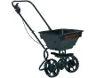 Épandeur rotatif à pousser d'une capacité maximale de 25 kg avec contrôle du débit par levier, pour une largeur d'épandage de 2 à 3 m.