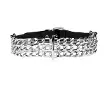 Ras de cou réalisé Avec trois chaines superposées en métal ajustable par boucle en cuir Un anneau permet l'utilisation d'une laisse